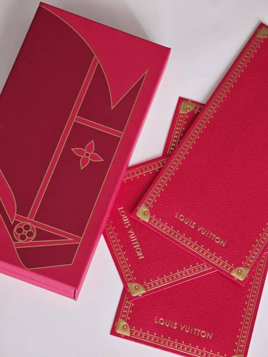 里面的红包也延续了金色包角的设计,还以几何造型和LV老花设计成了马,加上金色的福字,中式仪式感十足~