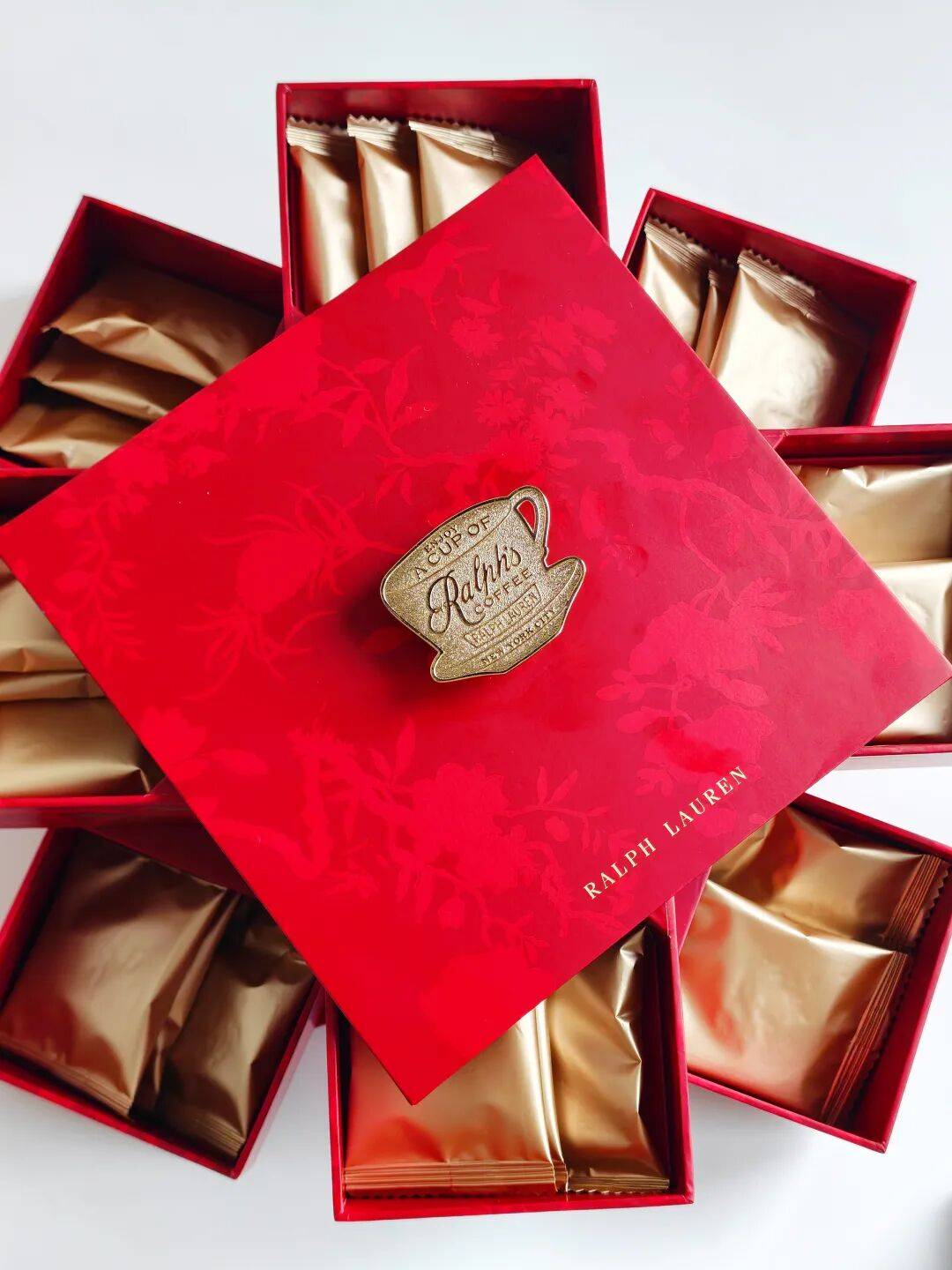 拉夫劳伦送来好吃又好看的农历新年曲奇礼盒,来自自家的Ralph’s Coffee。鲜红的礼盒上饰以牡丹花卉纹样,寓意富贵吉祥。侧面点缀的金箔骏马图案,则与咖啡杯手柄巧妙呼应。