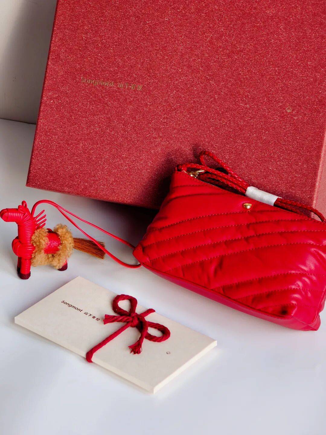 山下有松每年的生肖系列范主都很喜欢,今年的马年礼盒名为“纵马逐乐”。从灵动可爱的“踏花驹”包挂,到软糯精致的“滩时逐乐包”,都有着东方美学风~