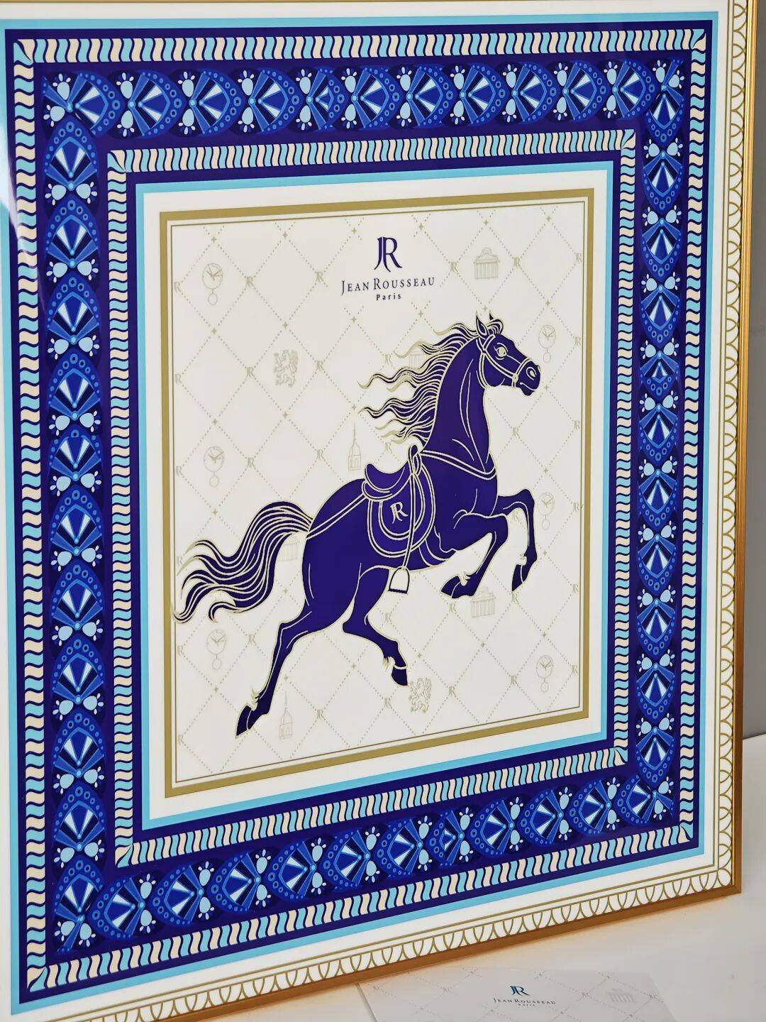 匠瑞狮送来一幅马年挂画。金色的画框里,一匹深蓝色的骏马腾空而起,姿态优雅又充满向上的力量感。