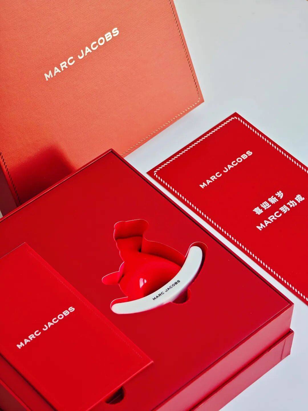 Marc Jacobs的新年礼盒中,一个大红色的摇摇马摆件格外引人注目,圆润的线条配上简洁的白色底座,可爱至极。红包设计也很有趣,极简的红色底色上点缀着白色的星芒和涂鸦风格的红色小马,个性十足,非常讨人喜欢。