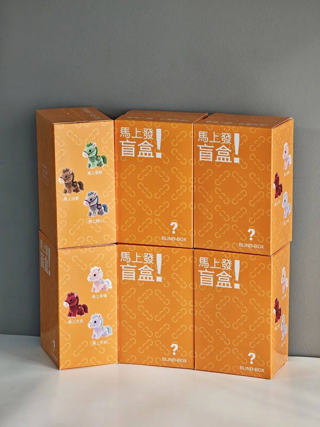 新濠酒店推出的“马上发”系列盲盒,橙色包装喜气洋洋。每个盲盒里都住着一只不同寓意的小马,如马上加薪、马上发财、马上平安等,憨态可掬,谐音梗的祝福直接把过年的好彩头拉满。
