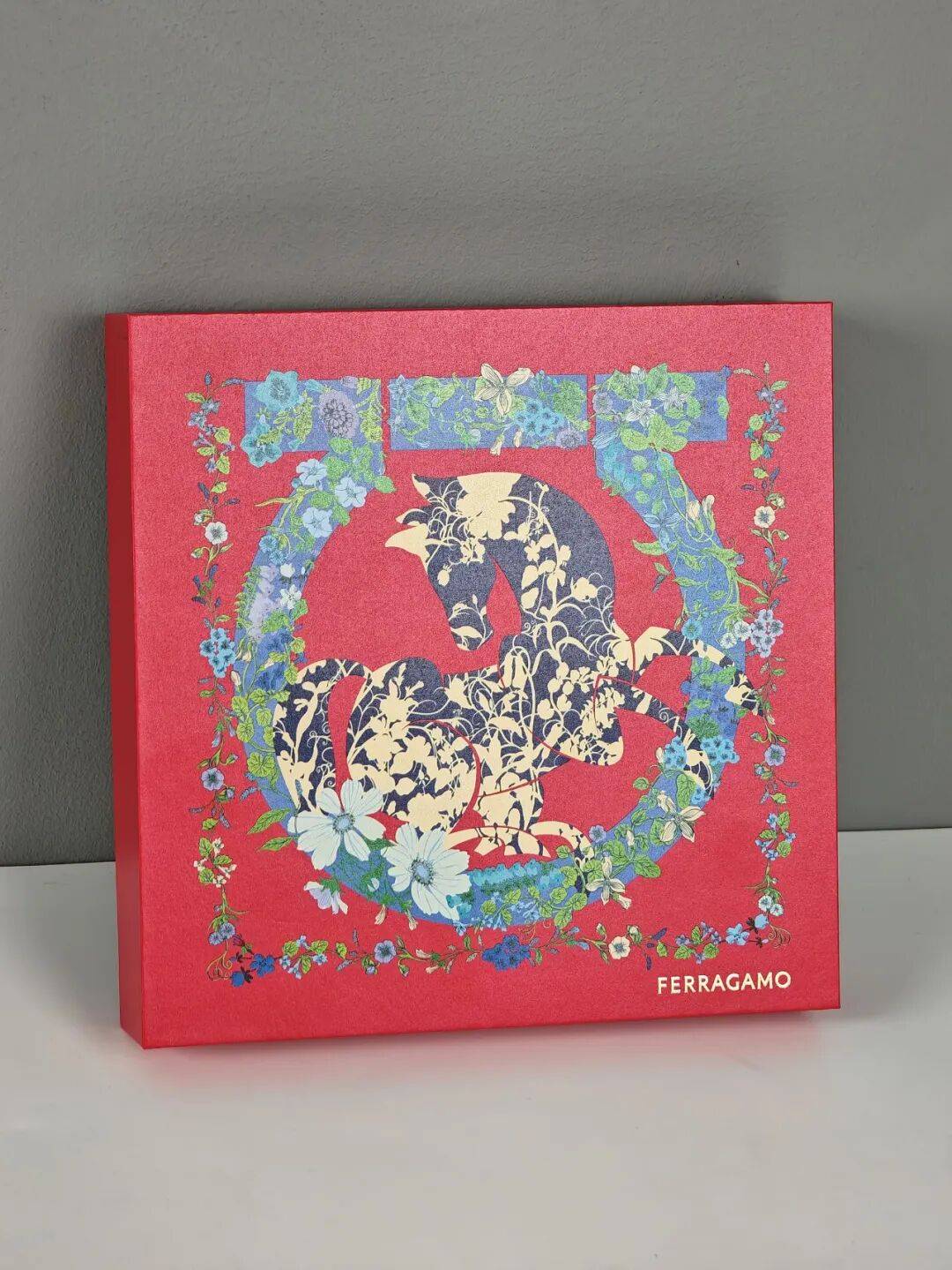 菲拉格慕的马年红包如同一组微型插画,红色背景下,马儿身上盛放着斑斓的花卉,蓝白色系花朵让原本英气的生肖图腾多了一份意式的浪漫。此外,还附赠一盒木质七巧板,让人仿佛回到了童年时光。