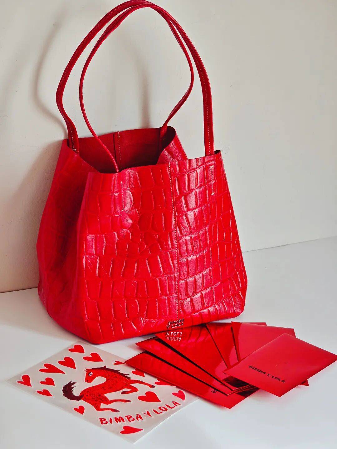 西班牙创意时尚品牌BIMBA Y LOLA,送来喜庆的红色鳄鱼纹SHOPPER包袋,纹理质感与利落线条,新春限定款很有节日氛围,日常背也不错。