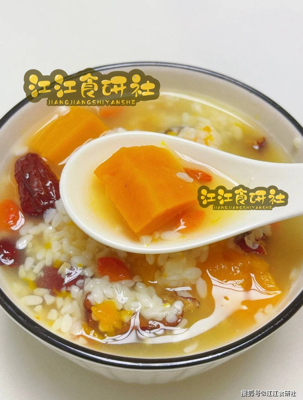 一勺舀起,粥体绵密,南瓜软糯,山药粉滑。