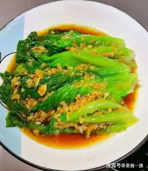 4. 勾芡淋汁: 倒入之前调好的酱汁,烧开。将剩下的一半生蒜末也加进去(这样蒜香味更有层次),淋入一点点水淀粉(淀粉加水调开)勾一个薄芡,让汤汁稍微浓稠。最后,把滚烫的蒜蓉酱汁“刺啦”一声均匀地淋在生菜上,搞定!