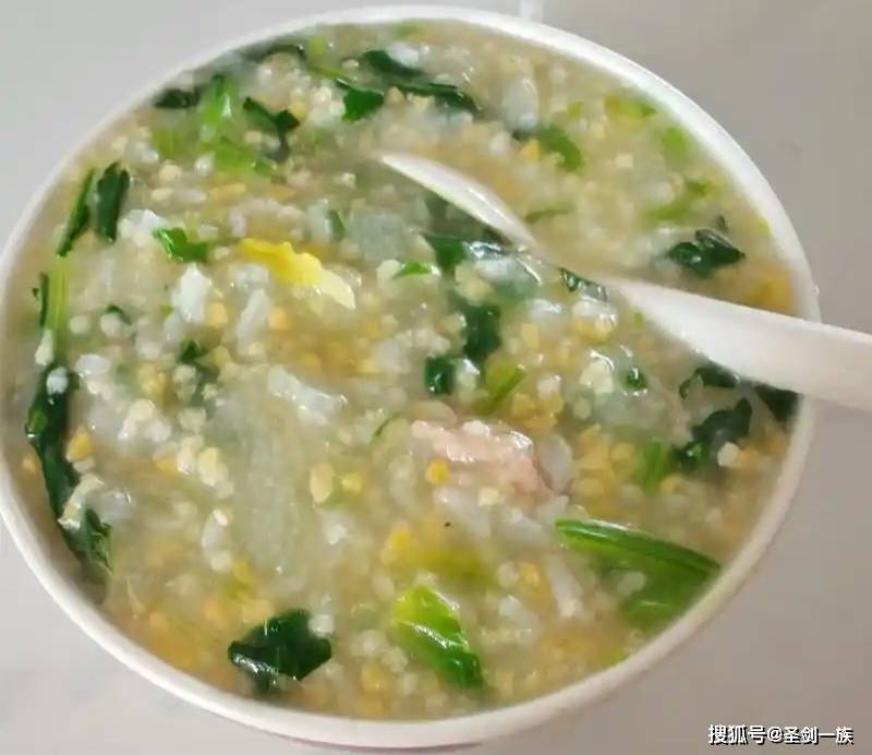 食材:胚芽米半杯、小米1/4杯、猪瘦肉末50克、菠菜3-4棵、山药一小段