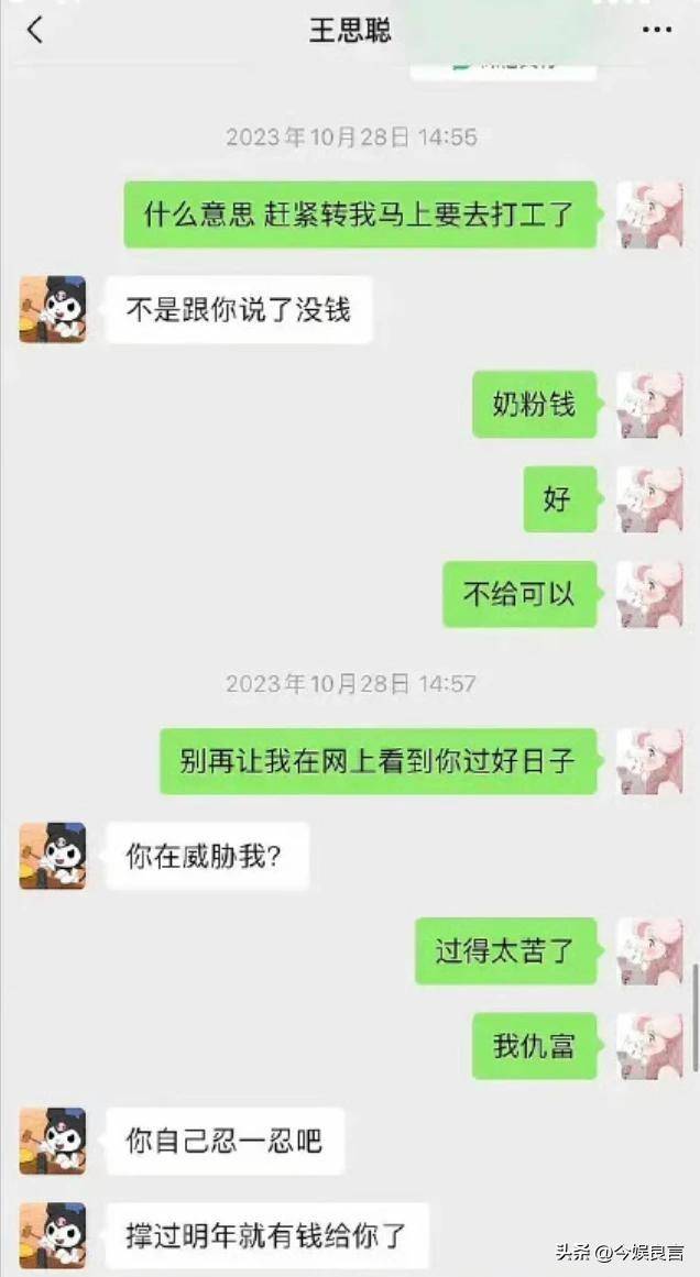 当黄一鸣为抚养费诉求焦头烂额时,王思聪正带着新女友滑雪、购物,甚至以“没钱”搪塞抚养费问题:
