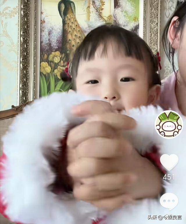 在近期的视频里,闪闪竟然开始模仿妈妈直播时的样子。
