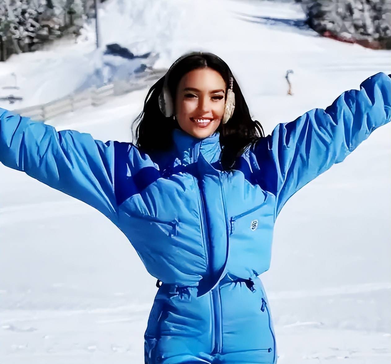 此次旅程中,她在社交平台晒出冬奥日常:蓝色羽绒服搭配滑雪镜与毛绒耳罩,在雪原打雪仗、漫步,配文俏皮活泼,褪去女王气场,尽显少女灵动。