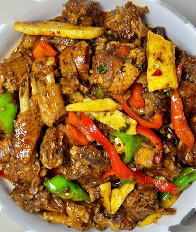 西芹寓意勤劳,鸭肉营养丰富,西芹烧鸭肉这道菜象征着通过勤劳的双手创造美好的生活,寓意吉祥如意。鸭肉肉质鲜嫩,西芹清爽可口,两者搭配在一起,别具风味。