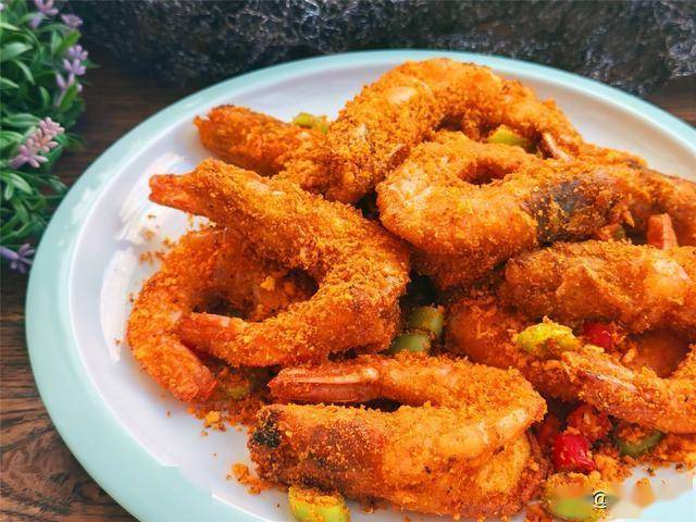 3. 油炸: 锅中油烧至六成热(筷子插进去冒密集小泡),依次放入虾仁,中火炸至定型、微黄后捞出。升高油温,再全部倒回去复炸 30秒,直到颜色金黄、外壳酥脆,捞出控油。
