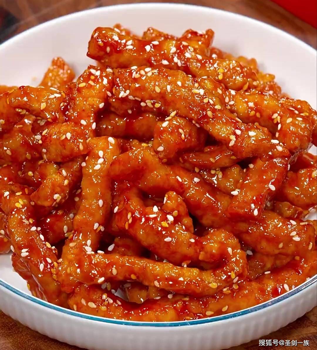 1. 猪里脊去掉筋膜,切成手指粗的长条,不要切太细,炸完容易干。