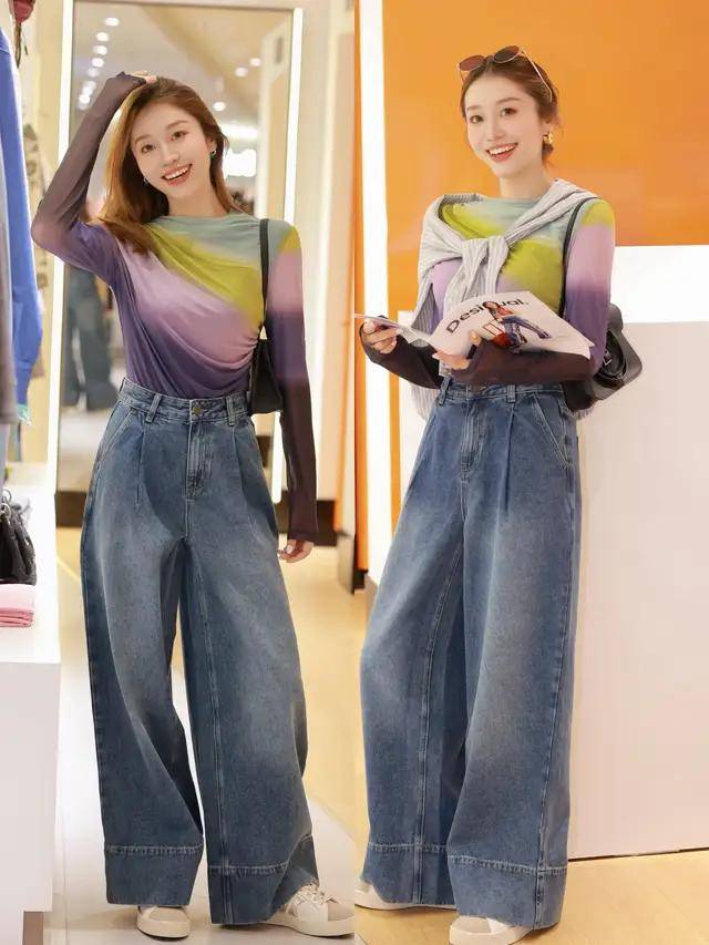 穿衣比较大胆的女性,我们还可以选择渐变色的上衣,搭配上一条牛仔阔腿裤,脚上穿着一双帆布鞋或者是小白鞋,这样的打扮真的很个性。不过不要轻易尝试。对于肤色有一定的要求,冷白皮的女性穿这样的衣服才显得 fashion。