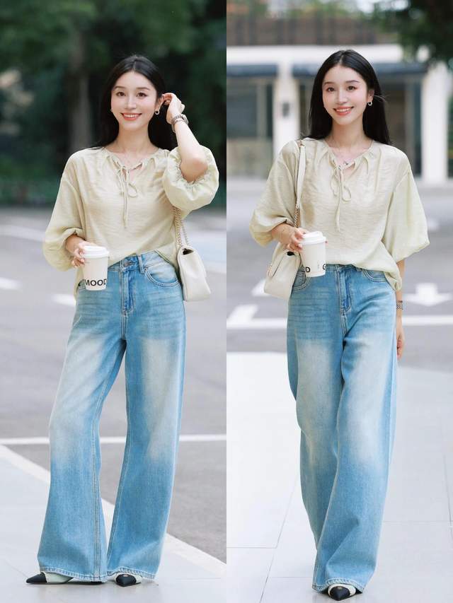 Tips②:小众衬衫搭配牛仔阔腿裤