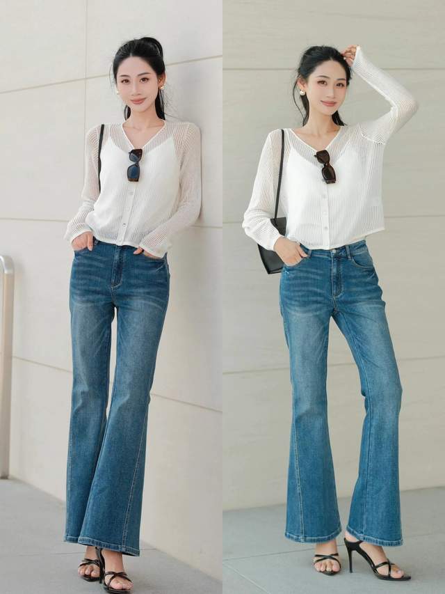 不管你穿的是高跟凉鞋还是浅口高跟单鞋,一定要注意鞋跟不能太高,控制在 6cm 左右最佳,穿在脚上稳定性会更好,同样也能延伸腿部线条。第五章节,牛仔裤的色彩搭配技巧分析