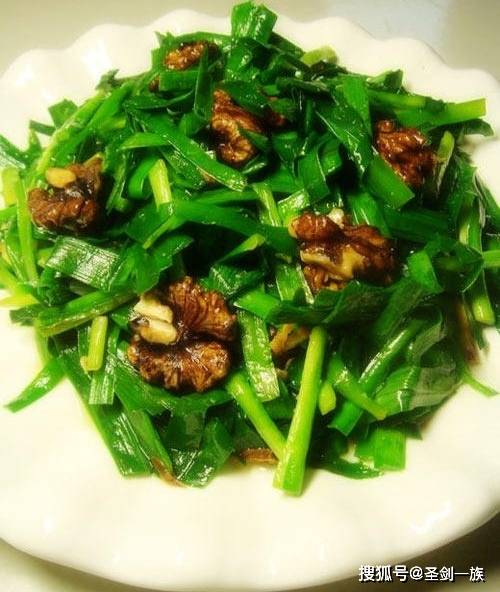 准备:嫩韭菜一把、核桃仁一小碗、姜丝少许。