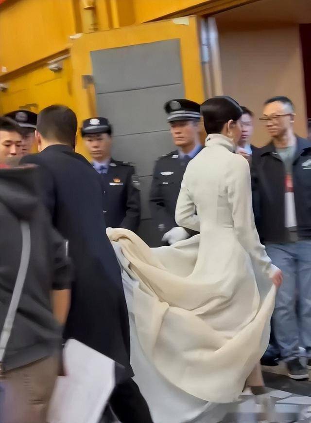 情人节路透:白色拖地长裙、银色短靴、十几位安保,网友直呼“仙女下凡”。