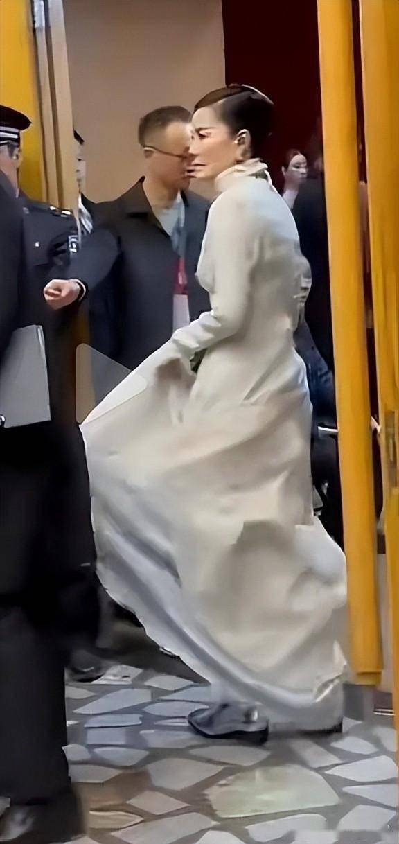 松弛感拉满:拖尾长裙需助理提裙摆,却因“云淡风轻”的表情成为经典画面。