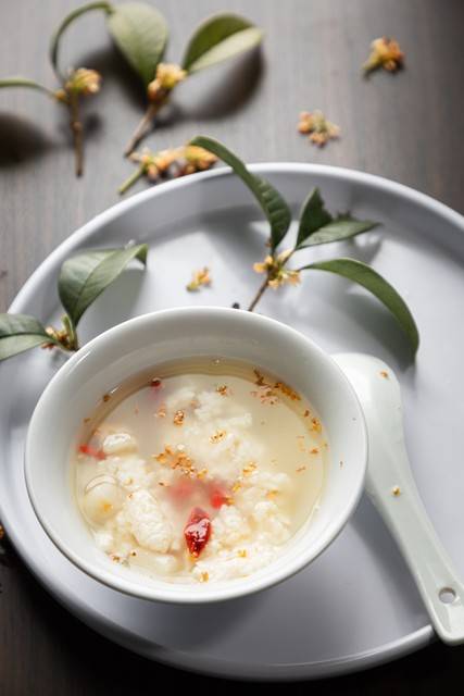 最后登场的银耳莲子羹,是年夜饭的温柔收尾。雪耳泡发后撕成小朵,与去芯莲子、桂圆肉慢炖至出胶。临出锅前撒入枸杞与桂花,琥珀色的羹汤里浮动着点点金红,宛如晚霞映照的云海。
