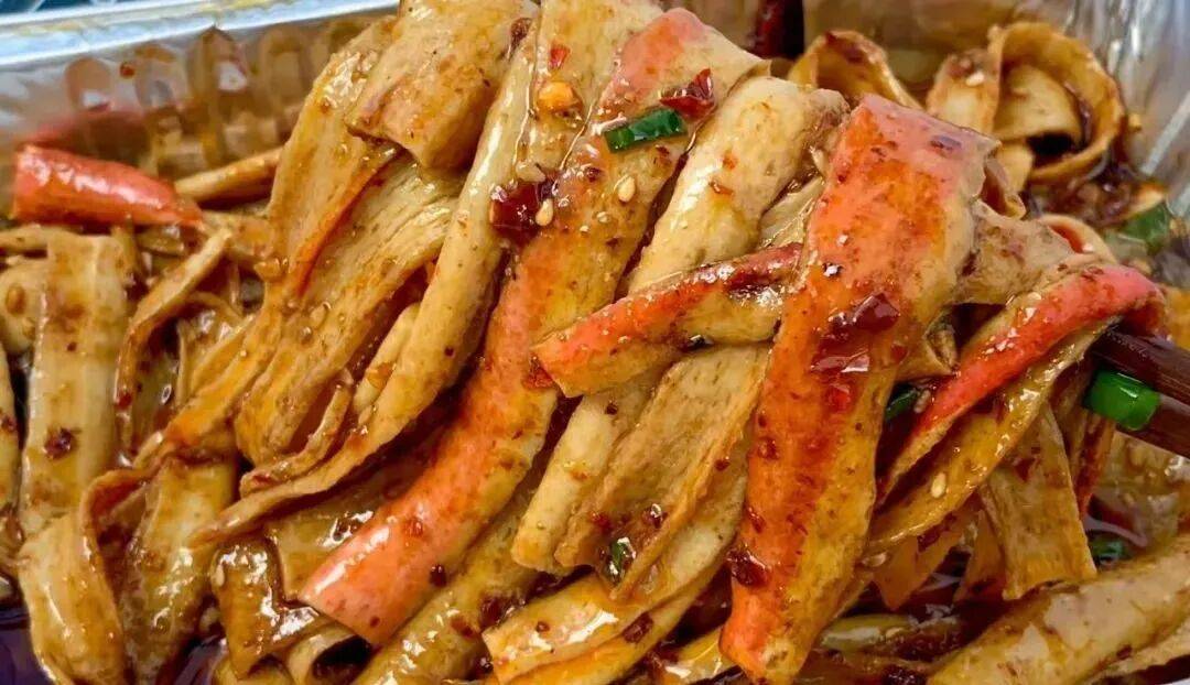 干腐竹在温水中舒展身姿,切段后用牙签串成中国结造型,油炸至金黄酥脆。另起锅用番茄酱与糖熬出琥珀色酱汁,将"金结"轻轻裹匀。咬破酥壳的瞬间,酸甜汁水在口中迸发,像极了新年里突然降临的小确幸。