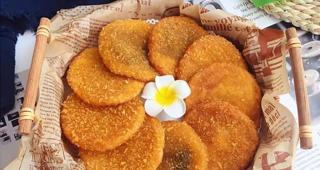 3油温6成热,放入南瓜饼,小火炸至两面金黄即可!
