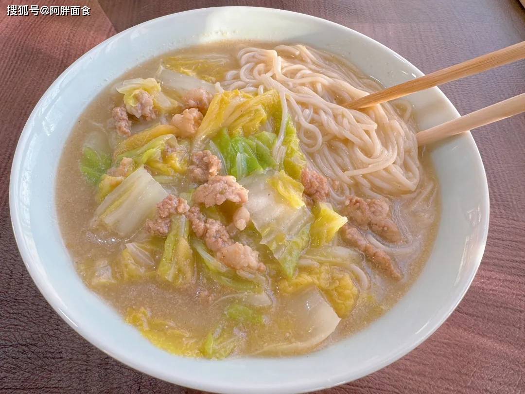 肉沫炝锅:猪肉沫炒至变色后,直接加开水(非冷水),瞬间高温激发肉香与白菜的鲜甜,形成浓白汤底。