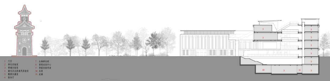 校园风貌要求“传承”,前沿医学希望“创新”。外部的形态要求与内部的学科气质之间,也意味着文化应答上的挑战:怎样的建筑设计才能平衡二者?