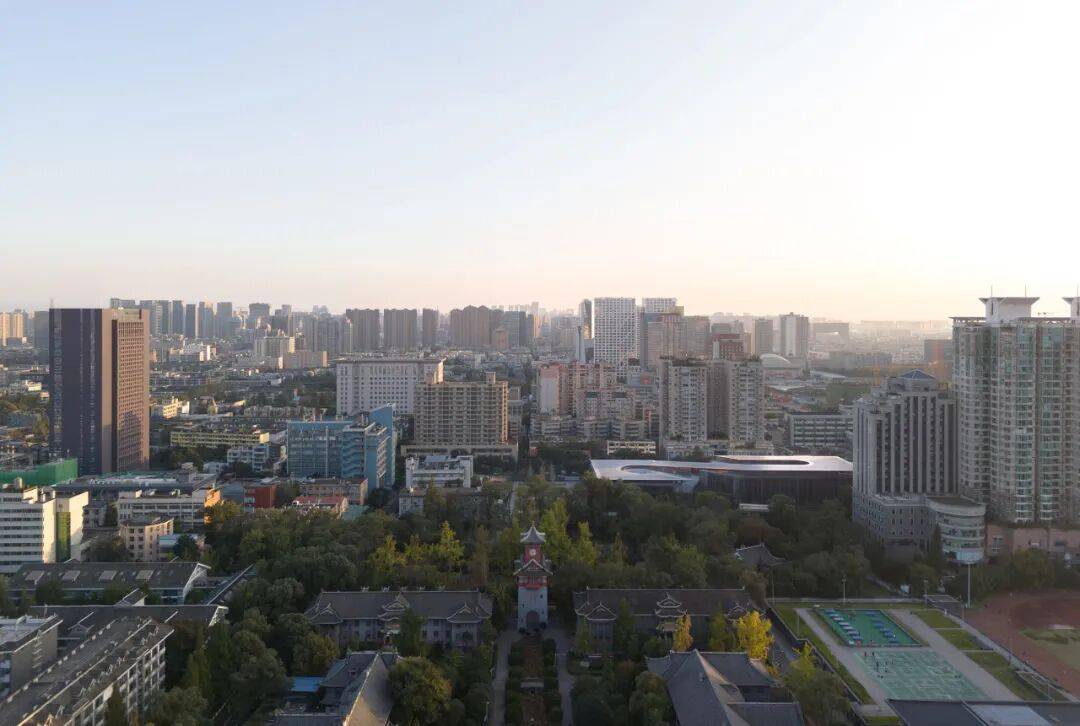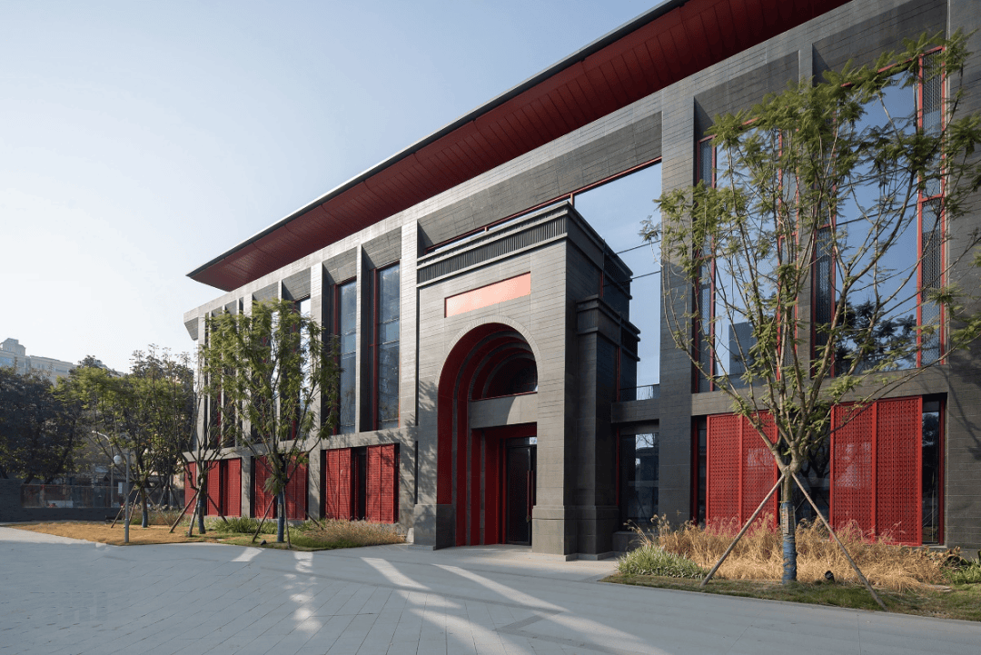 华西坝的集体记忆:项目位于华西坝校区最后一块完整用地,周边钟楼、荷花池、银杏大道等历史元素构成校园精神地标。设计通过延续红灰主色调、三段式构图、拱形门头等历史建筑语言,实现新旧建筑的尺度和谐。