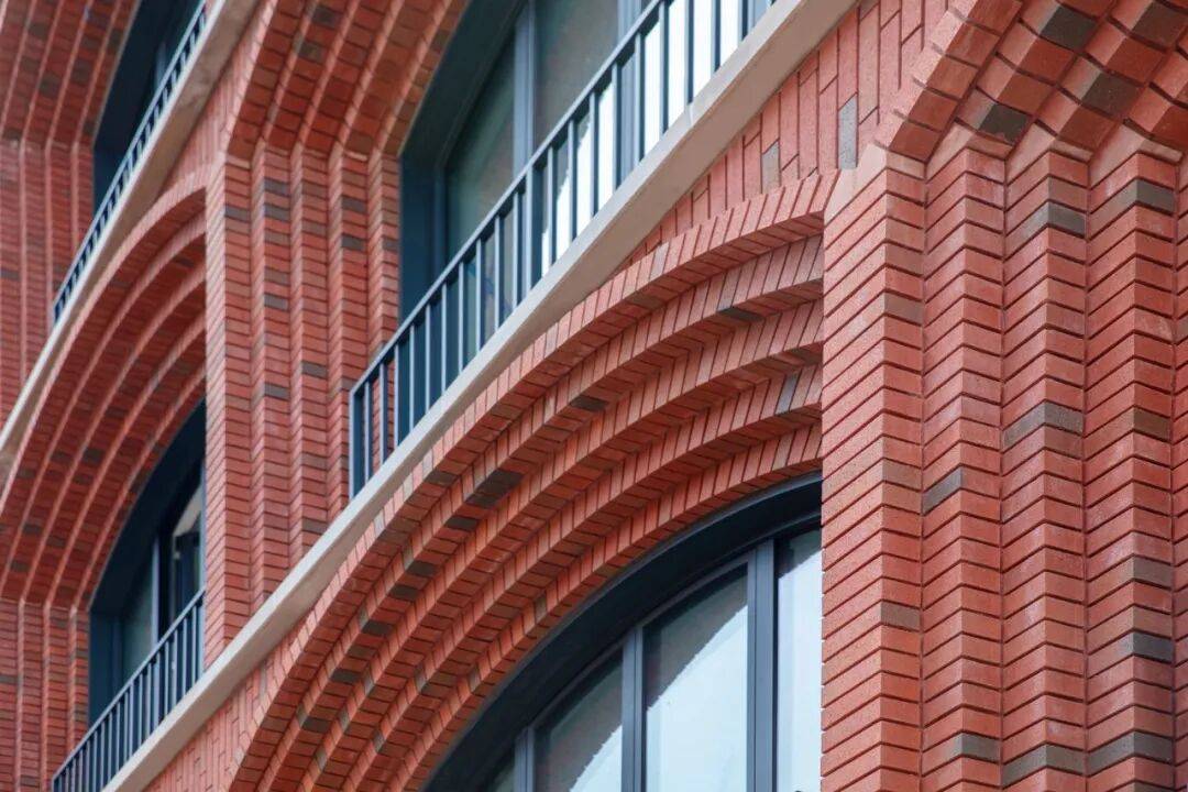 拱形语言的重构:立面由五层拱形砖石组成,采用手工砌筑工艺,呼应社区传统建筑语言。拱形窗既展现现代设计美学,又为居民提供充足自然采光与历史街道景观。