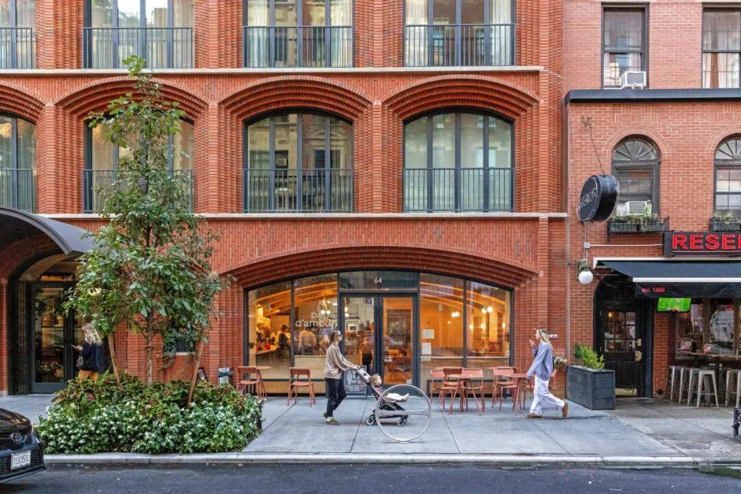 街道界面的延续:建筑位于华盛顿广场与联合广场之间,设计延续现有街道界面,上层逐渐退台形成露台,与周边低层建筑形成和谐过渡。