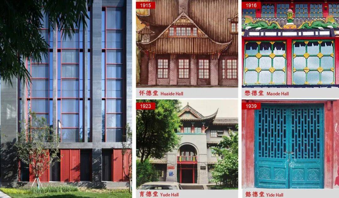 川大华西坝校区,是早期教会学校的典型代表;由英国建筑师荣杜易领衔规划的百年华西,中西合璧、独具特色的历史保护建筑众多。我们尊重历史,对百年华西历史建筑的空间模式、结构策略、建造细节、材料色彩、装饰纹样等进行了深入研习;在此基础之上,尝试融合与表达。