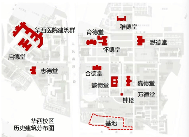 位置:位于四川大学华西校区(后坝地块/林荫街校区)。