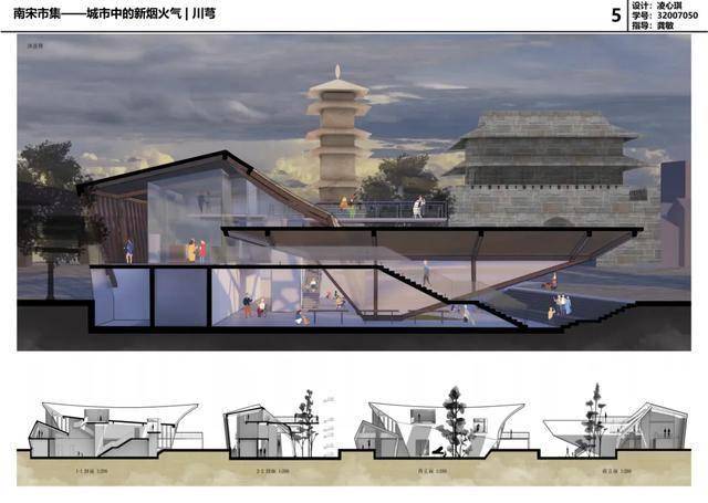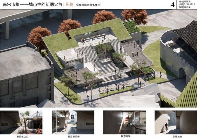 建筑系2021级学生三年级第一学期第1个作业为“南宋市集——城市中的新烟火气”,开展了针对复杂城市环境的设计探索。