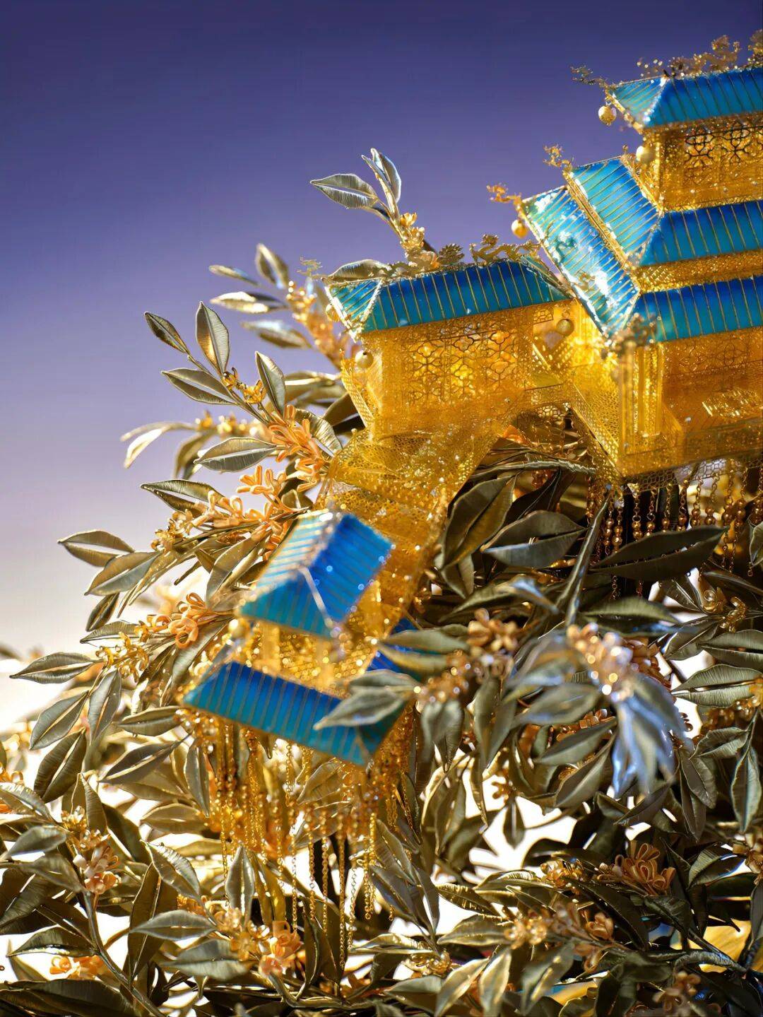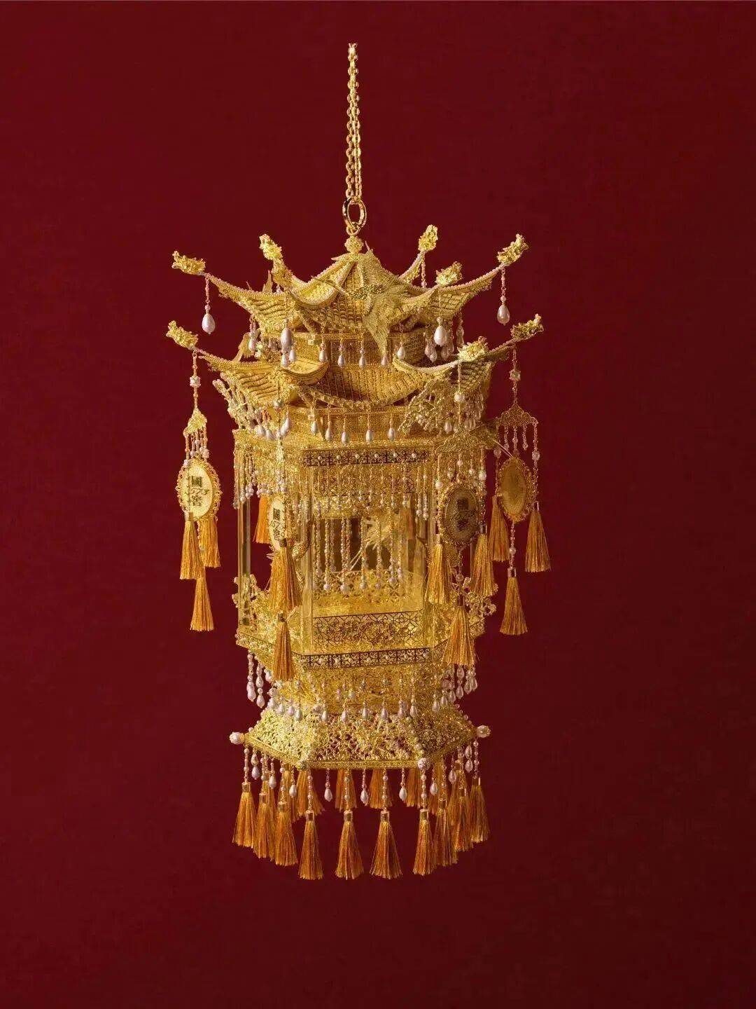 用到了中国传统的 琉璃烧制、花丝镶嵌等等技艺制 作,一共1573颗宝石,40颗琉璃宝珠。