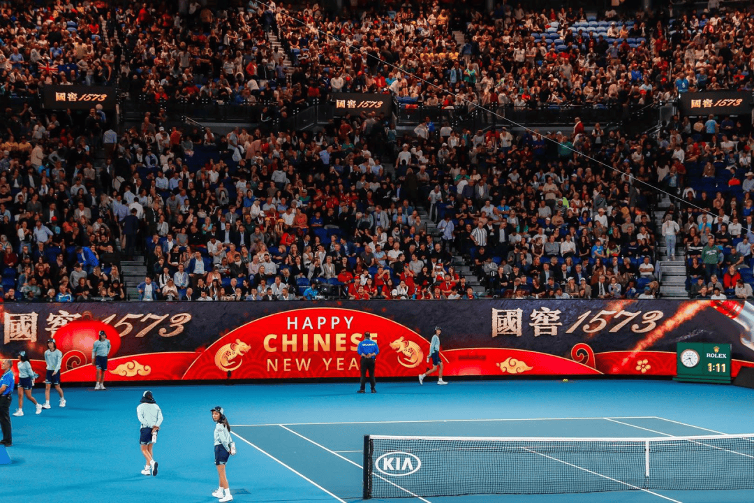 之所以全球观众都能在比赛时看到那句Happy Chinese New Year,是因为国窖1573如今在澳网属于和劳力士一个级别的赞助商。