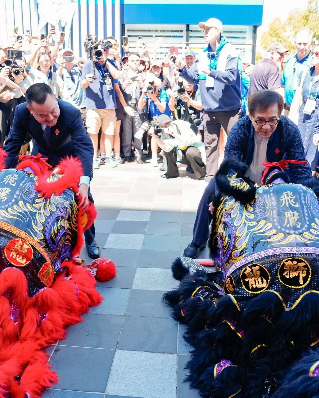 △成龙去年在澳网期间醒狮簪花挂红,现场安利中国文化