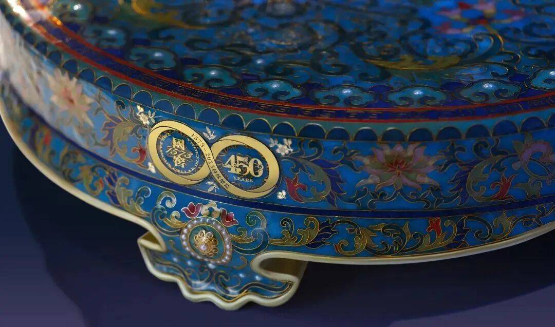 △国窖1573和中国掐丝珐琅制作技艺联名的非遗作品“福贵满枝”的细节