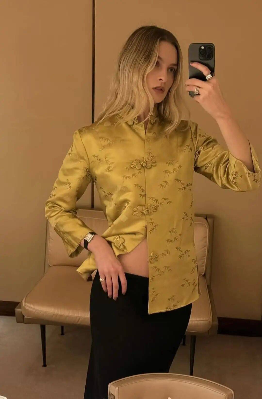 △美国时尚博主@Christie Tyler最近在中古店淘的中式睡衣,感叹开启了新世界大门