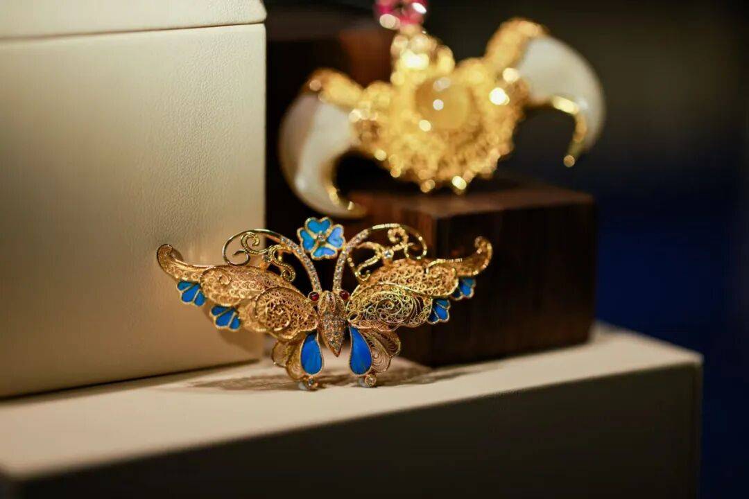 2023年春节:与花丝镶嵌技艺合作,推出“品味中国年”宫灯系列,以黄金拉丝与宝石镶嵌展现瑞兽造型,后赴米兰参展“新生万物——中国非遗与当代设计展”。