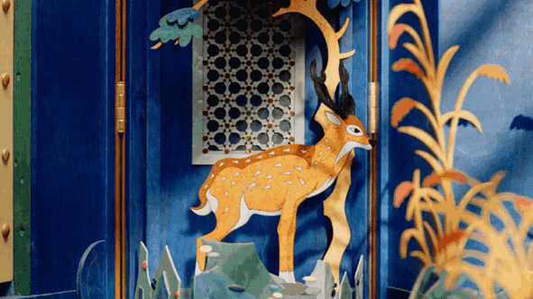 与“端木良锦”合作,以木材镶嵌呈现动物图案,细节精致如画。