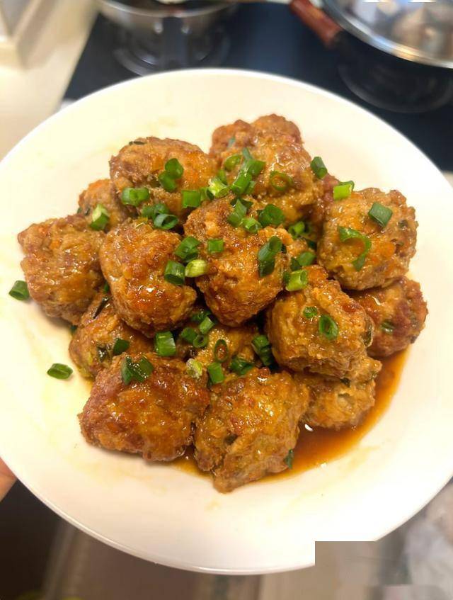 四喜丸子或者普通的炸丸子,圆滚滚的形状代表着“圆满”和“团圆”。