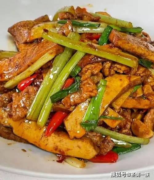 做法:瘦肉丝滑炒后,与豆干、芹菜、小米椒快炒,调味仅需盐、鸡精。