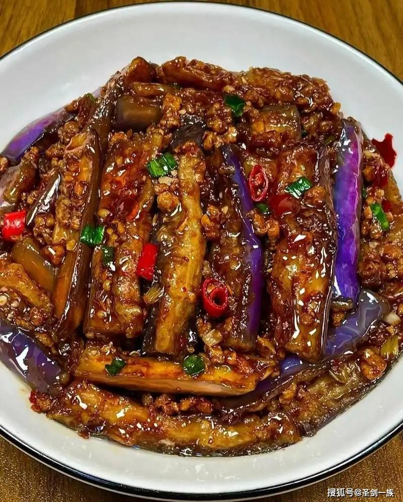4. 酱汁煮至浓稠后淋在茄子上,撒上翠绿葱花即可