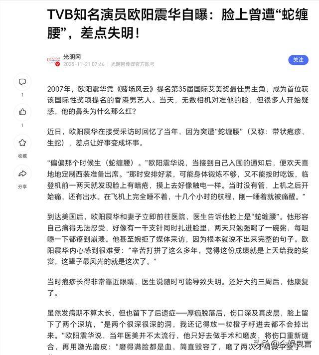 事业巅峰的意外:入围国际艾美奖“最佳男主角”,却因长期熬夜导致免疫力下降,脸上突发“暗疮”。