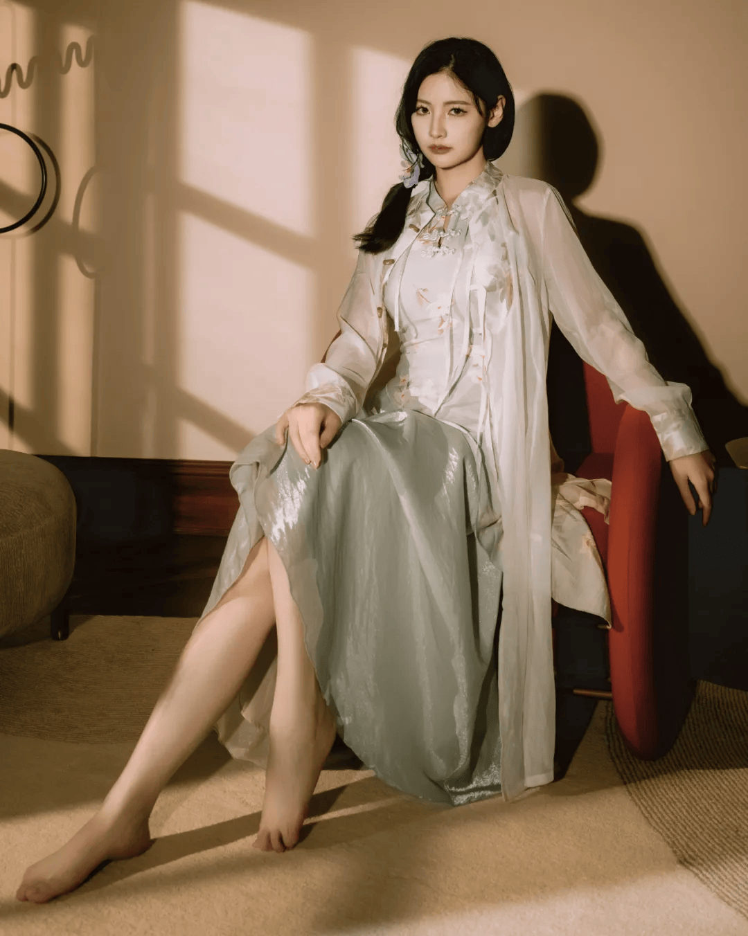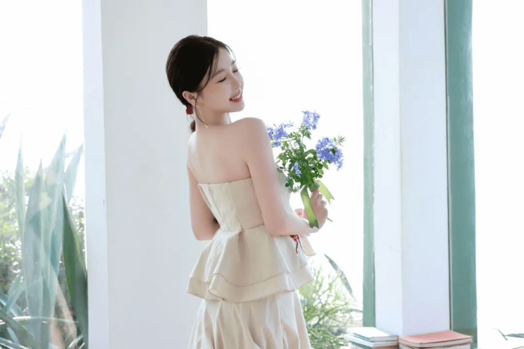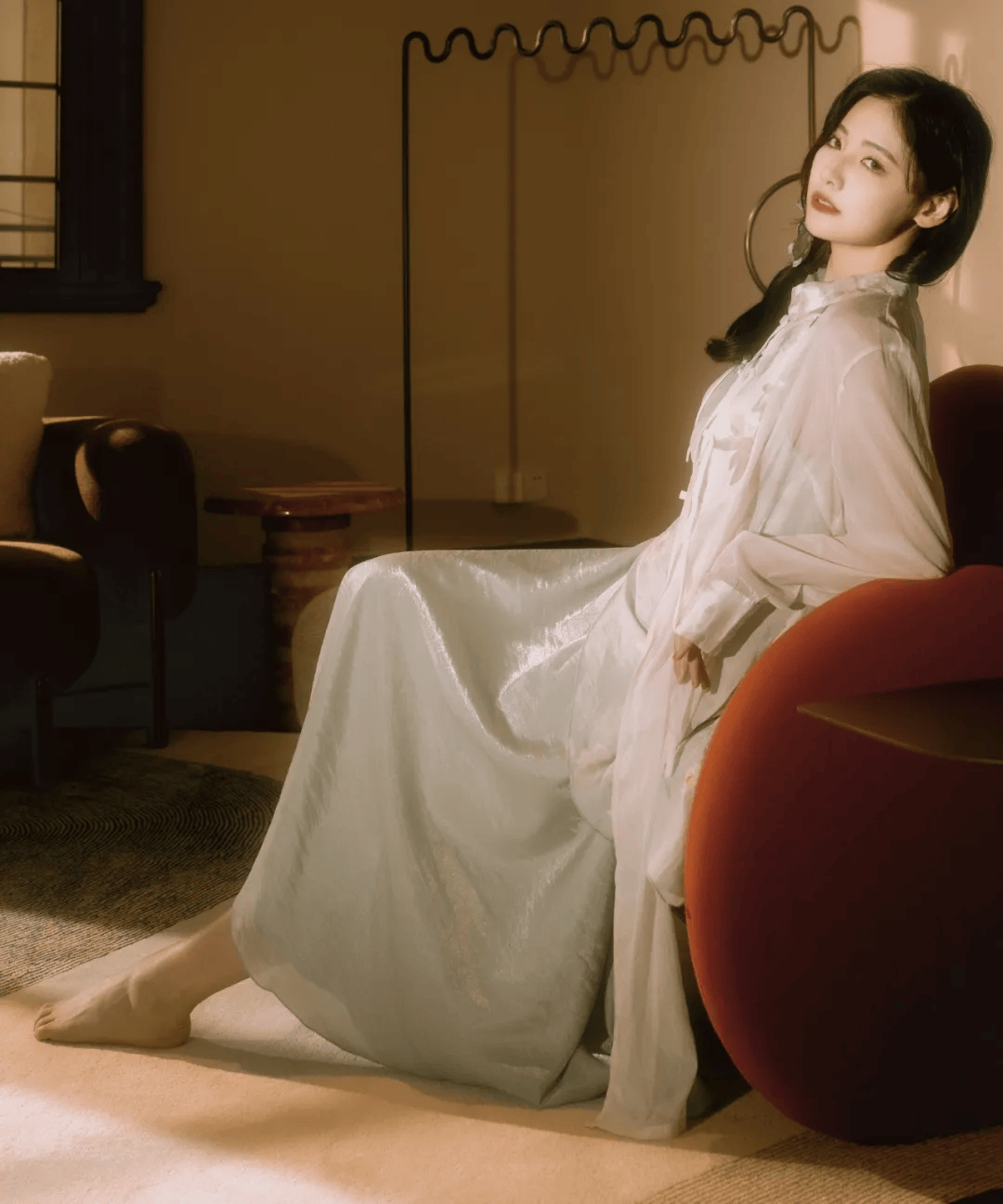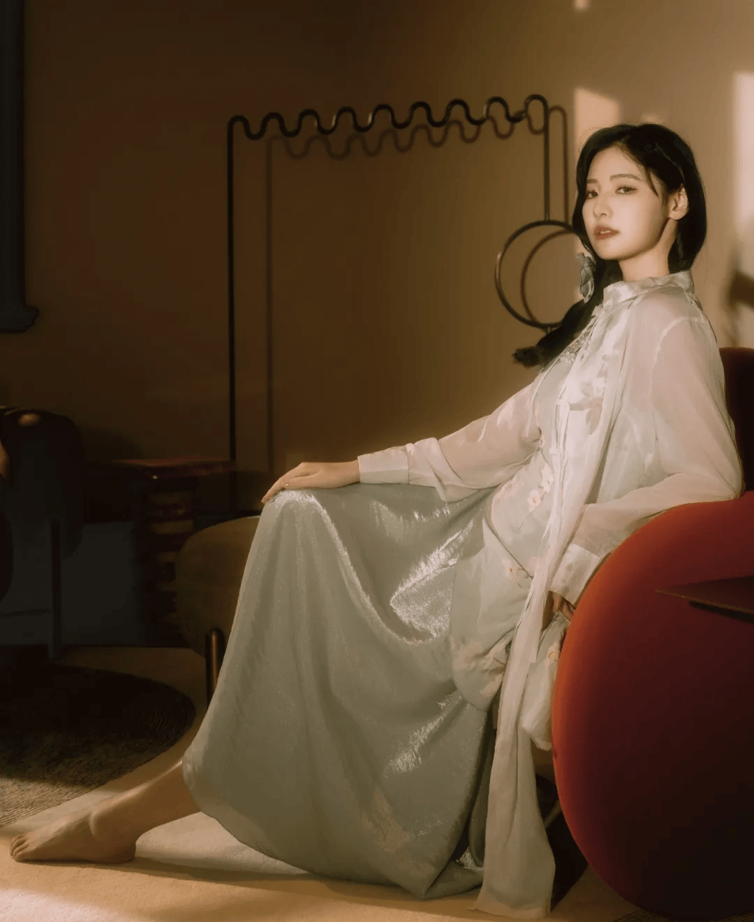 赵粤穿着鎏金刺绣旗袍斜倚朱栏,团扇轻摇间展现出江南水墨画般的清冷感与灼灼桃花般的热情,矛盾的美学令人惊艳。作为SNH48的舞担,她在舞台上气场全开,从女团成员到帅气学姐,利落短发与旗袍产生奇妙化学反应。竹林写真中,真丝吊带裙勾勒出蝴蝶骨振翅的弧度,宛如月下练剑的侠女。她从第一次公演的紧张同手同脚到如今的舞台王者,不断打破柔美框架,私底下却是个会给舞鞋取名的萌妹。她刚柔并济的特质让每次亮相都令人期待。