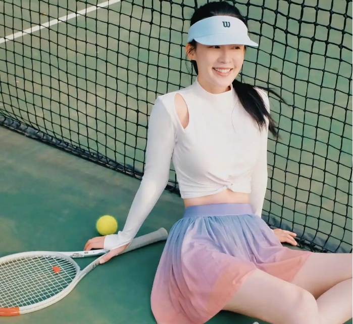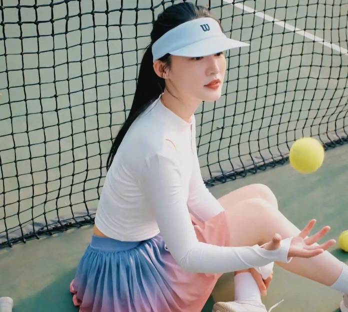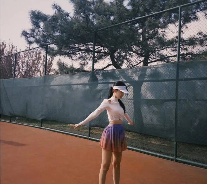 李沁化身运动达人,七彩短裙搭配白色紧身衣大秀迷人身材!
