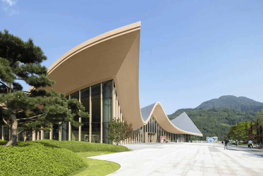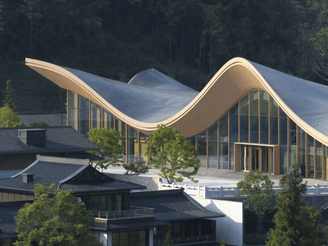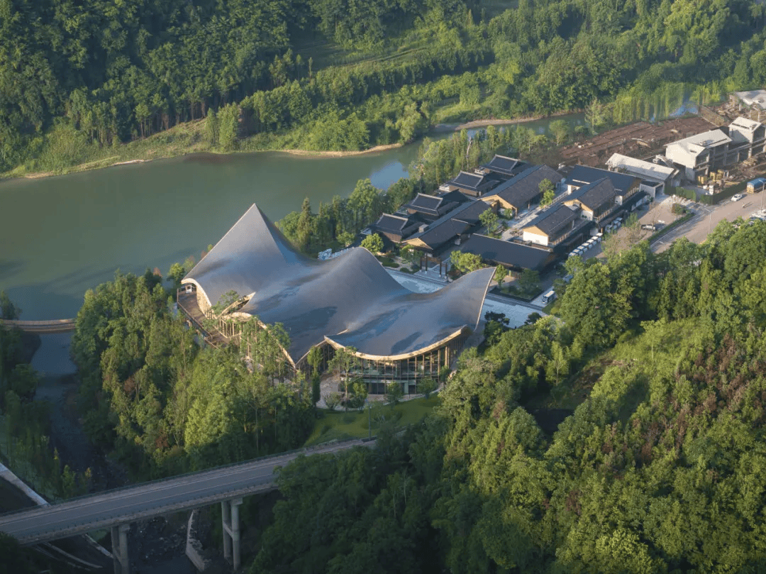 峨眉山南山里美学中心:以“云、山、水、林、禅”为设计灵感,建筑造型如同山间流动的曲线,屋顶与周围山峦脊线相呼应,仿佛从土地中生长而出。大面积留白、简约质朴的设计语言传递禅意精神,室内外无缝连接让人感受自然脉动,屋顶平台与临水露台亲近湖光山色,餐厅环绕湖景,实现人与自然、禅意生活的完美交融,成为峨眉山地区独特的文化地标。