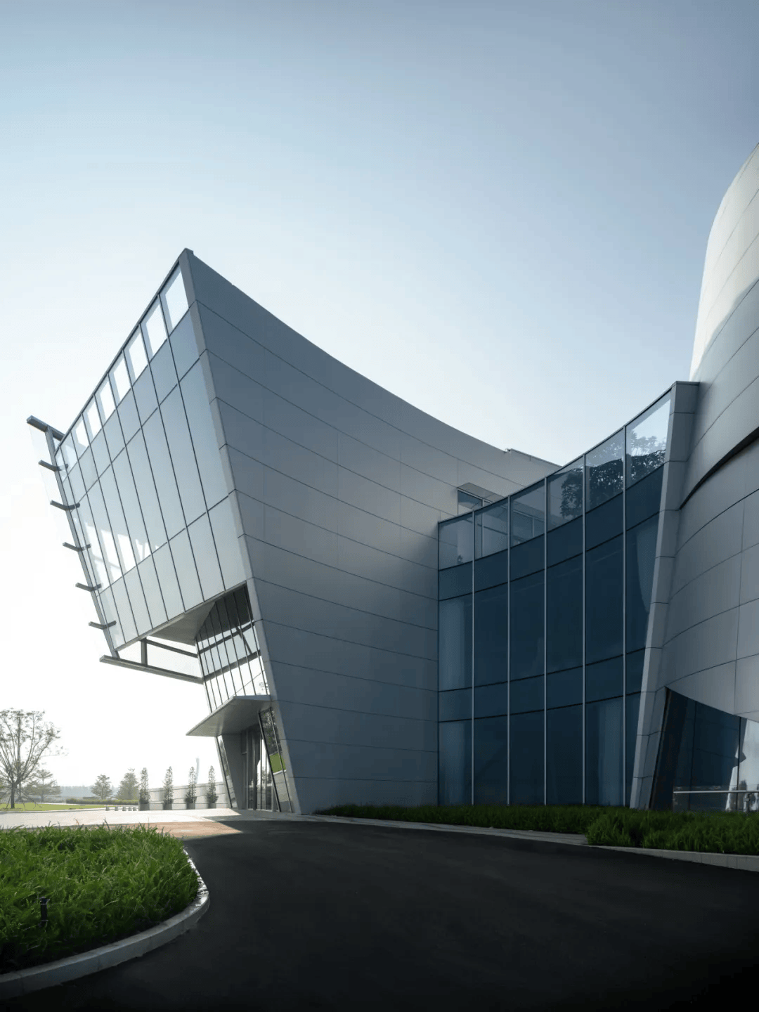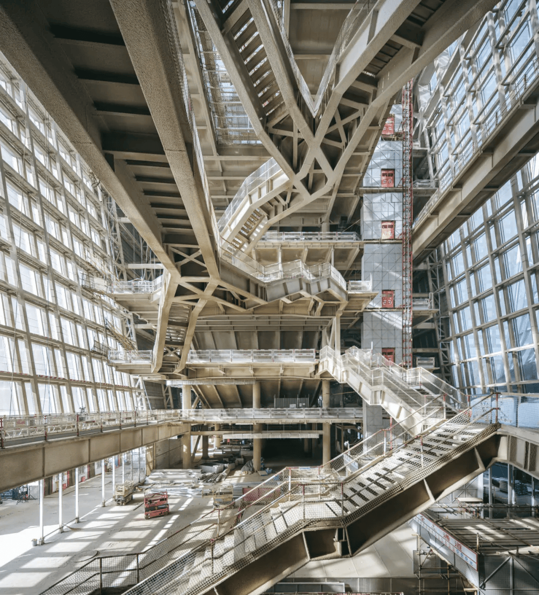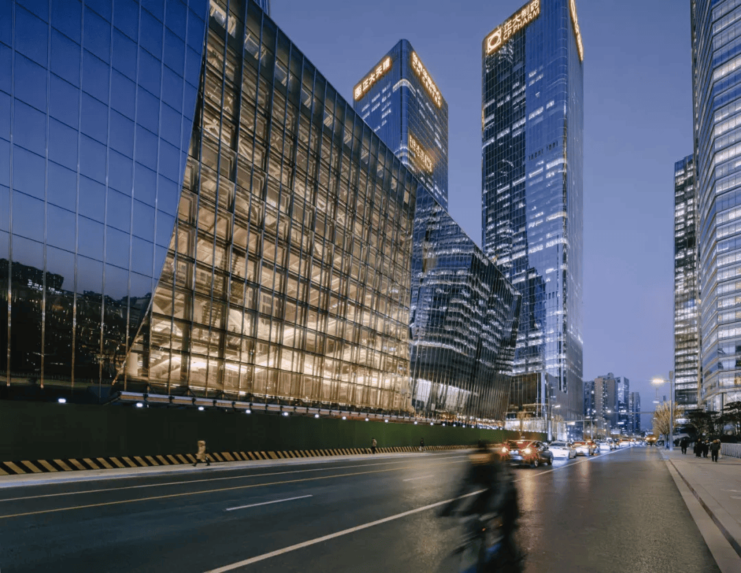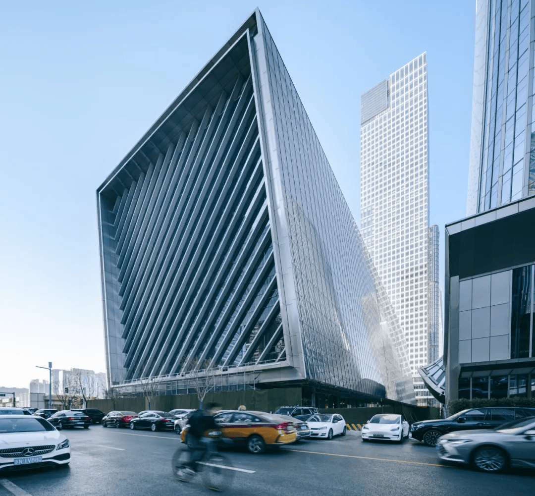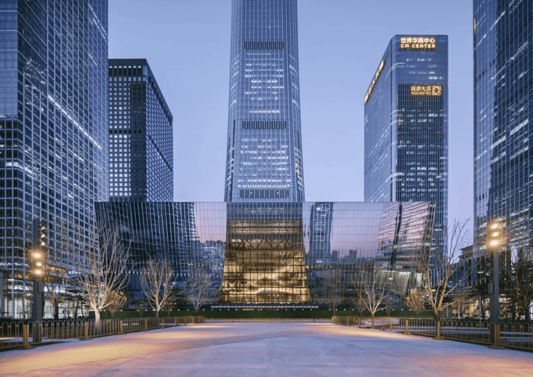 北京CBD文化中心:位于北京中央公园畔,以“两翼夹中庭”形式落位,前倾9度的镜面体量融入城市肌理,回应绿意与天际线。东西双体量分别容纳展演与会议功能,通过中庭连桥构建立体流线,激发城市公共漫步。底层通透开放成为文化与生活交汇的街区客厅,地下一体化连接周边塔楼与交通系统,同时获得LEED与中国绿色建筑认证,以科技与生态重塑未来公共建筑范式,使城市文化与公共日常在此共生。