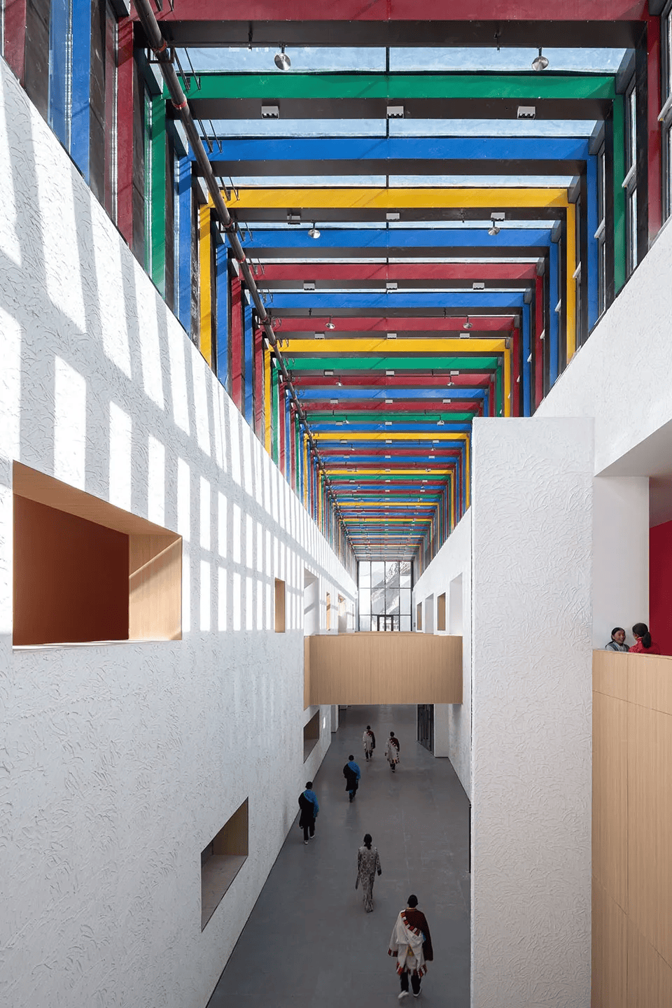 西藏洛扎县中学多功能艺术中心:融合藏地自然环境与建筑语言,采用在地可回收材料,以“光之峡谷”为概念核心,通过天窗、屋顶平台、楔形庭院等空间策略,营造出丰富的学习与交流场所。不仅是一个教育空间,更是一座传承文化、启发心灵的精神场所,传承和弘扬了藏地文化。
